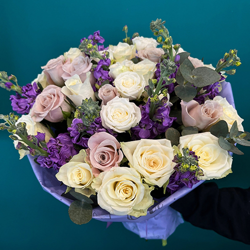 Букет "Фиолетовый мусс" из роз и ароматных маттиол